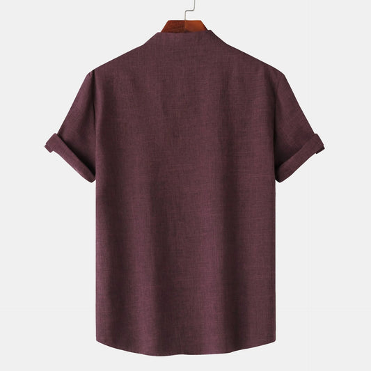 Men's Casual Linen Blend Mandarin Collar Short Sleeve Henley Shirt