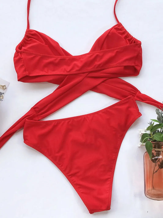 Frill Trill Halter Neck Bikini Set