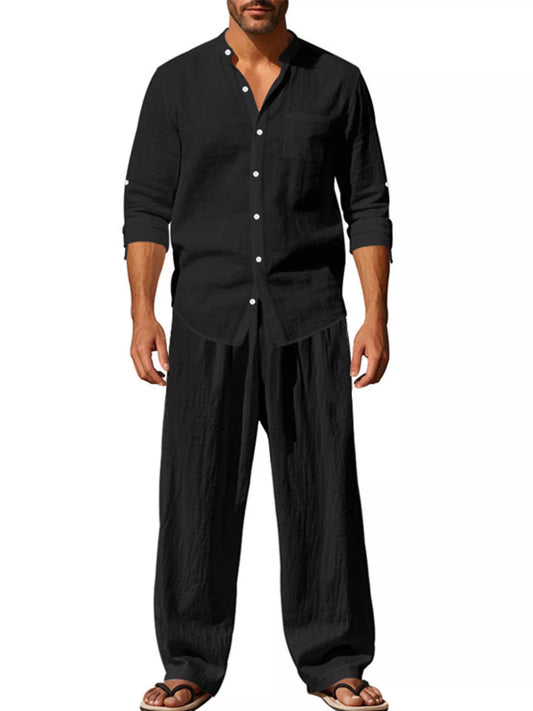 Men's Full Size Button Up Long Sleeve Shirt and Pants Plus Size