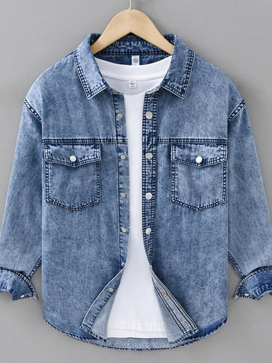 Men's Plus Size Casual Long Sleeve Denim Shirt