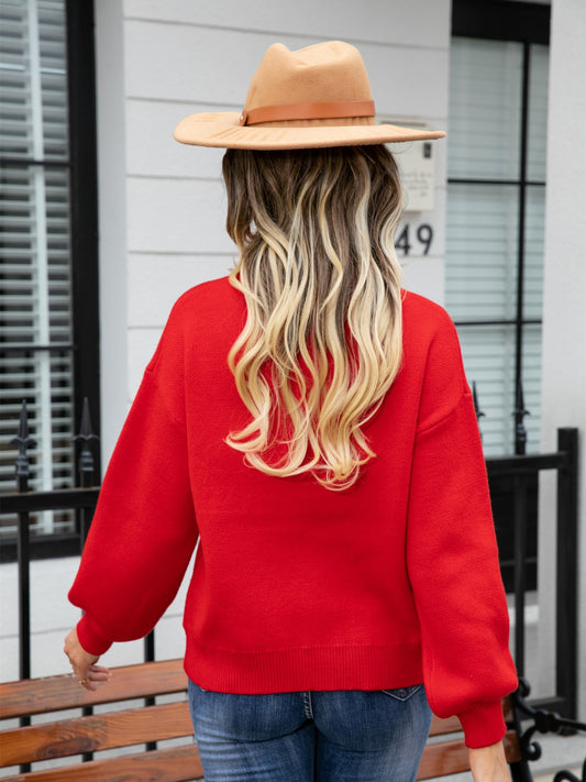 Heart Round Neck Long Sleeve Sweater