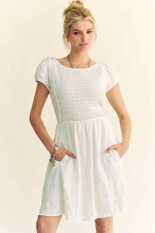 Davi & Dani Crossed Back Short Sleeve Dress with Pockets